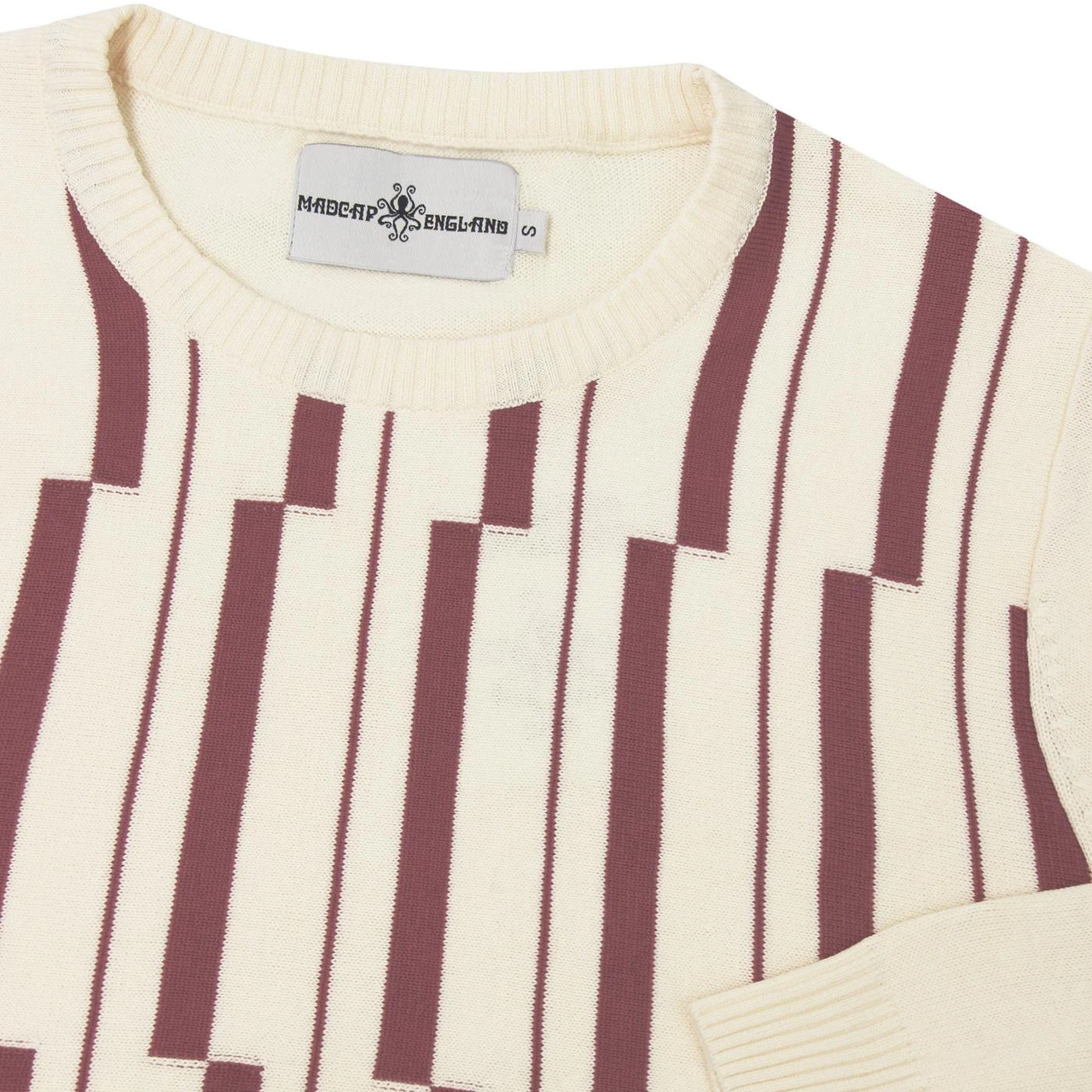 - Madcap England ‘Amadeus’ retro abstract stripe crew neck jumper in eggnog.