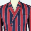 ‘BACKBEAT’ MENS RETRO SIXTIES BLOCK STRIPE BOOTCUT MOD TROSUERS by MADCAP ENGLAND – Mens red and navy Retro block stripe trousers, cleverly separated by off white and sky pinstripes. Horizontal jetted pockets to front and button down jet pockets to reverse. Mod double button waistband. Bootcut bottoms with a contrast diagonal stripe finish to create a Vintage textured look.