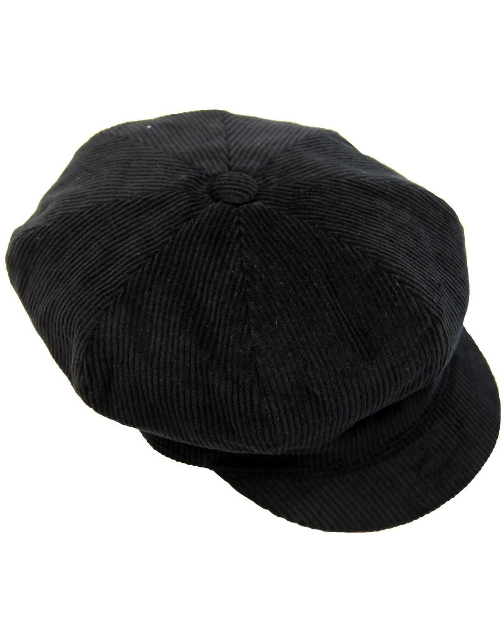 – Madcap England ‘Bobbie’ Bakerboy cap in black corduroy.