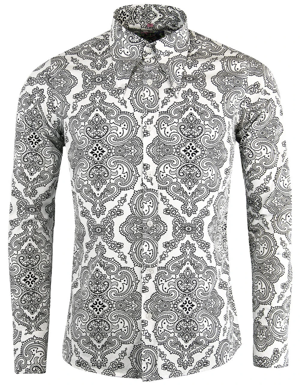 – Madcap England ‘Capo’ men’s 1960s psychedelic bandana paisley shirt.