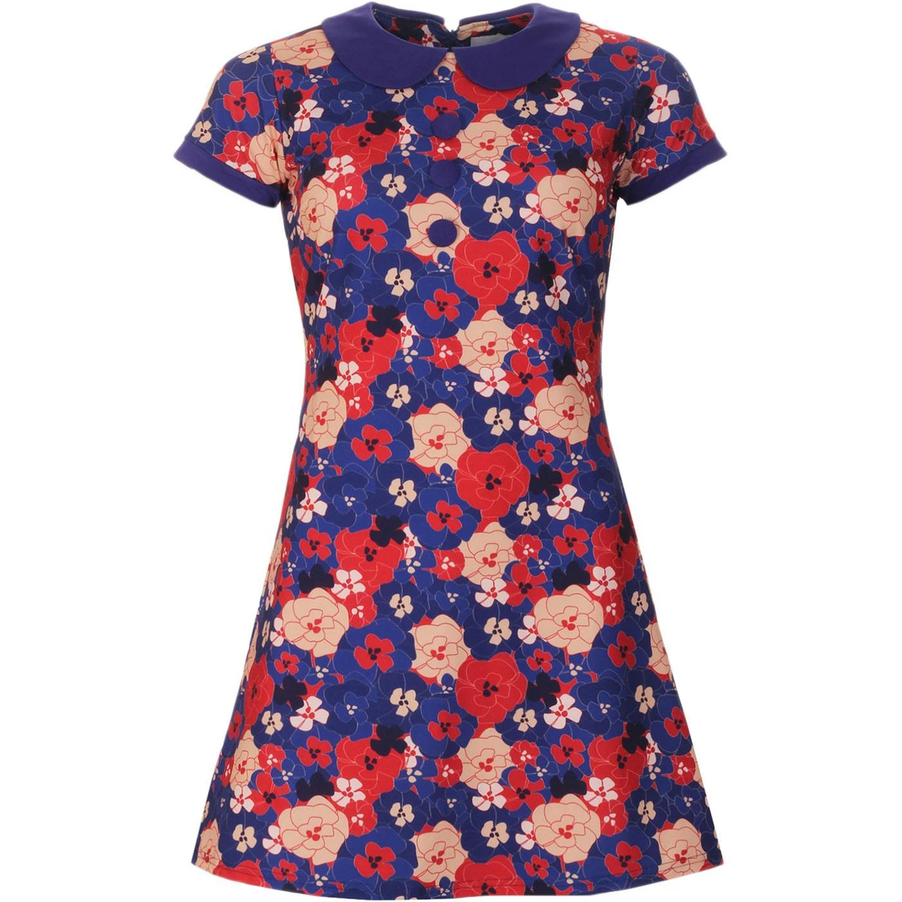 - Madcap England Dollierocker Retro Floral 1960s mod Peter Pan collar dress.