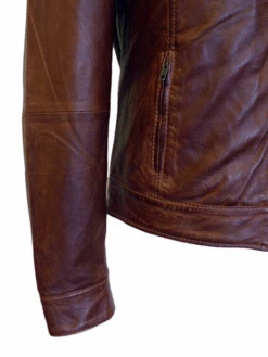 ‘HARPER’ MADCAP ENGLAND MENS RETRO INDIE LEATHER RACER JACKET – Mens dark brown leather jacket with Retro racer collar in the traditional Last Members Indie style. Pockets to sides, zip fasten, press stud to collar and Retro check lining. Blouson Bomber fit.
