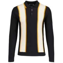 - Madcap England Junot Stripe Panel Knitted Polo Shirt.
