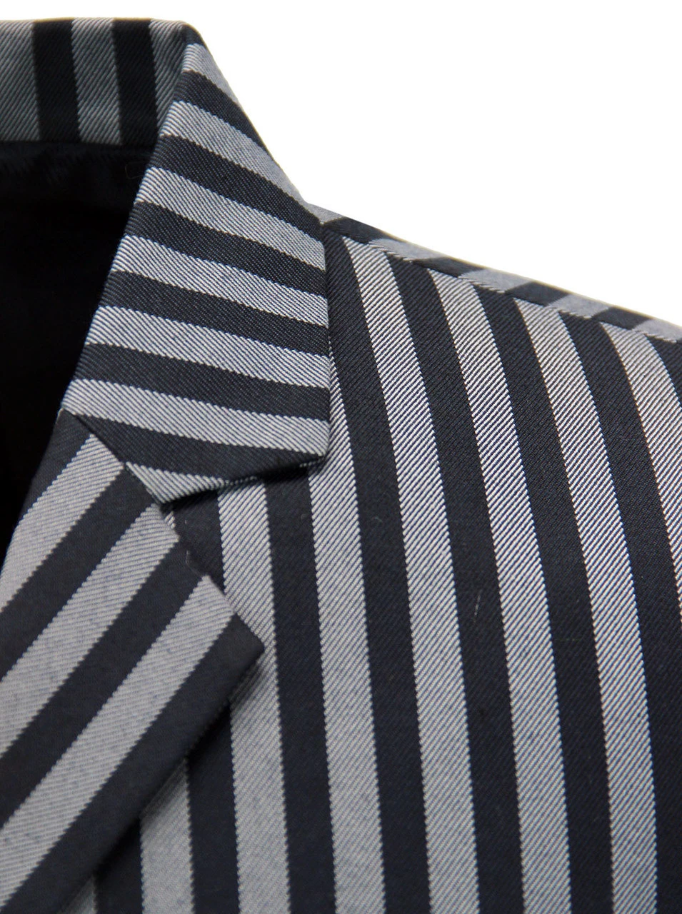 Key Points: Madcap England ‘Meadon’ regatta stripe boating blazer with 3 button singe breasted fastening. Notch lapel, ticket pocket and centre vent.