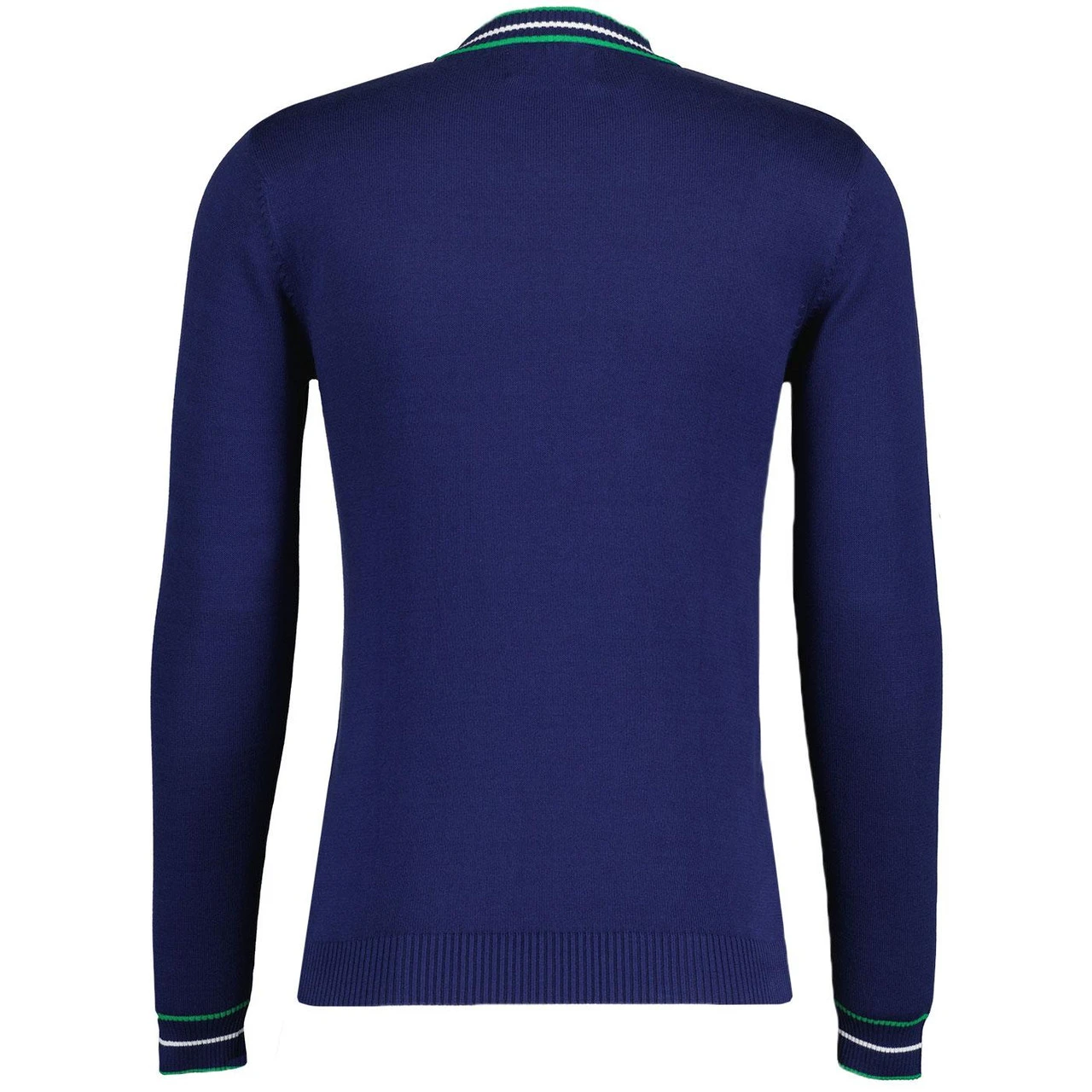 • Green and white retro tipping to turtleneck and cuffs.