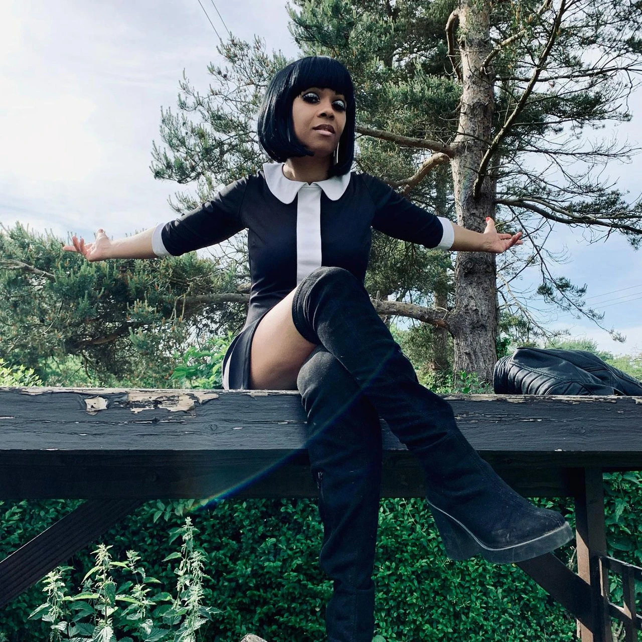 - Madcap England Odyssey 60s mod mini dress in black and white.