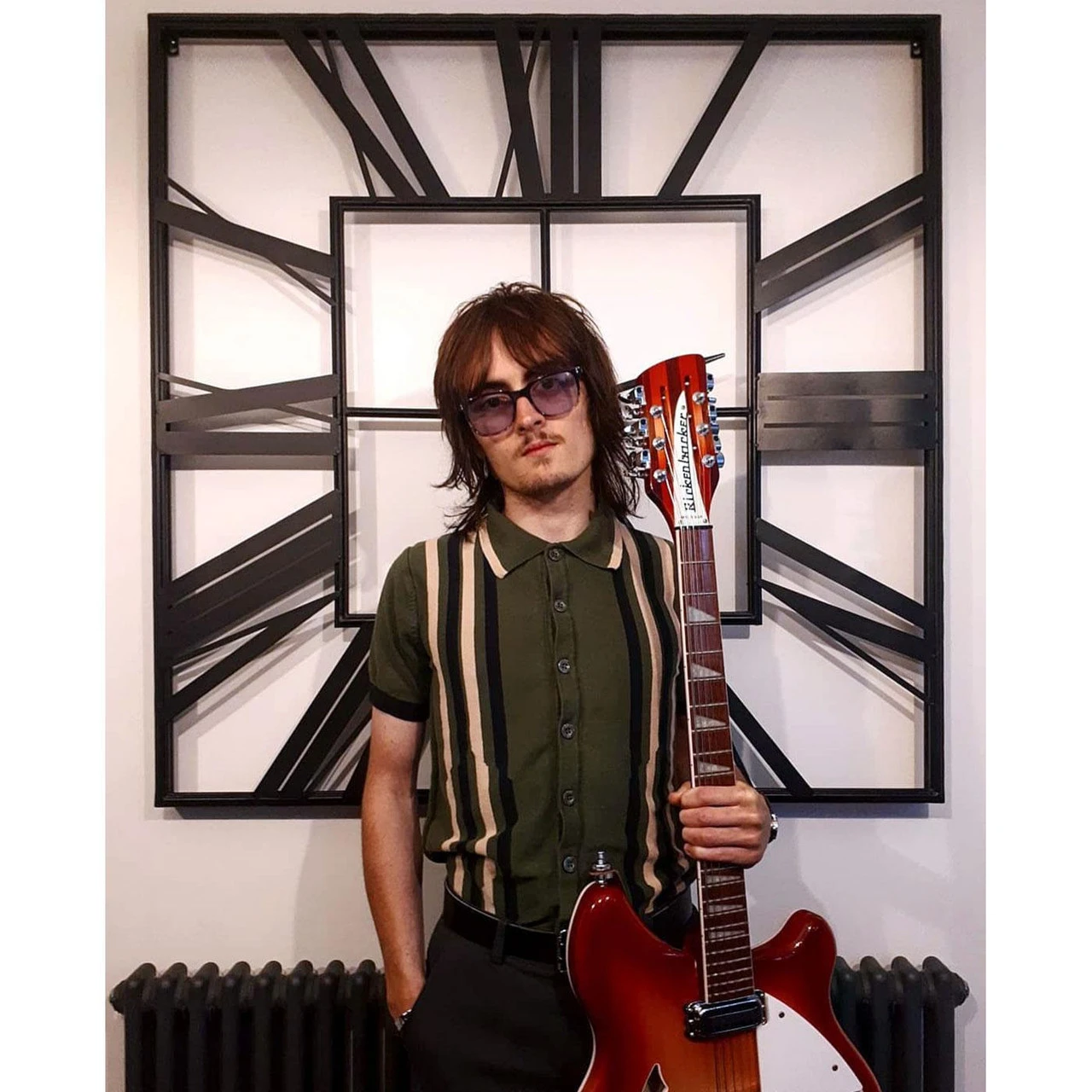 - Madcap England ‘Shockwave’ retro stripe panle knitted polo cardigan.