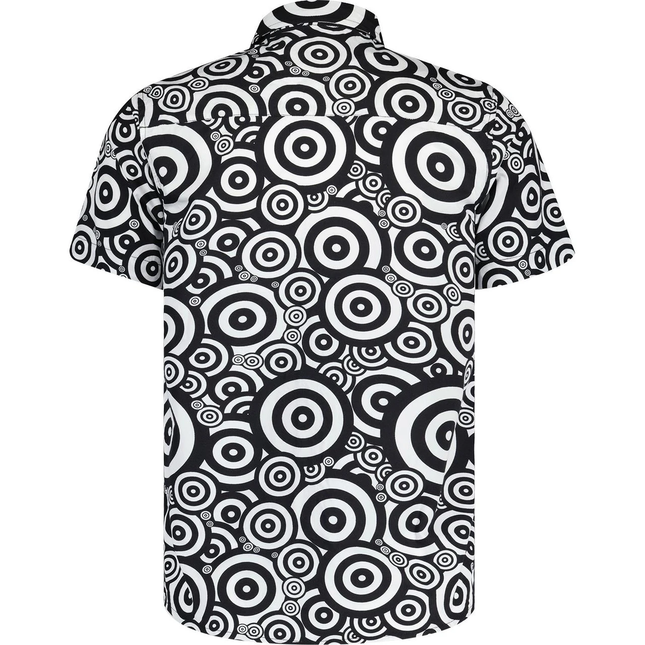 - Striking monochrome 60s psychedelic target print.
